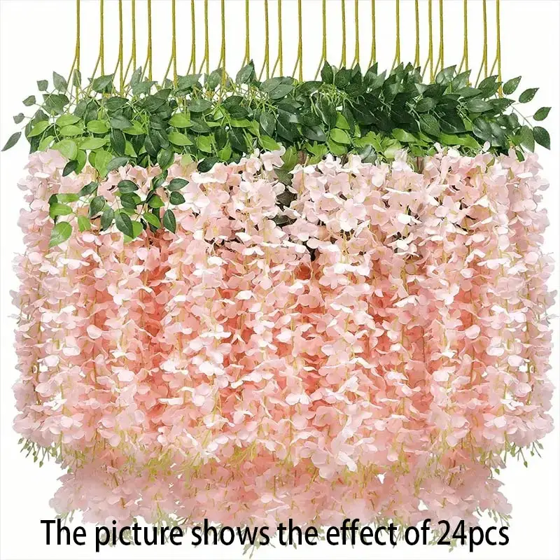 12pcs Wisteria Vine Artificial Flowers Wholesale Trailing Fake String for Home Wedding Party Decor Silk