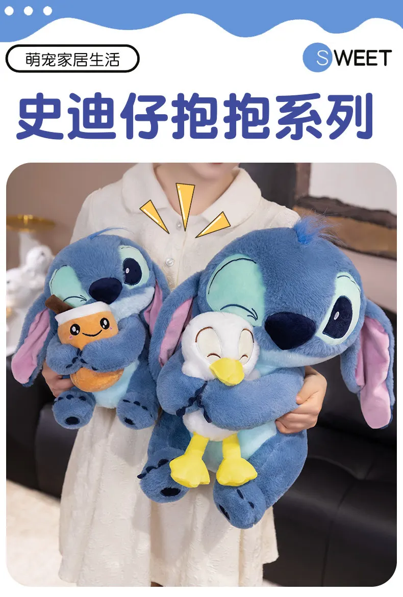 Disney Lilo & Stitch Plushies Hug Donald Duck Kawaii Anime Couple Models Cartoon Stitch Plushies With Bubble Tea Cup Doll Pillow